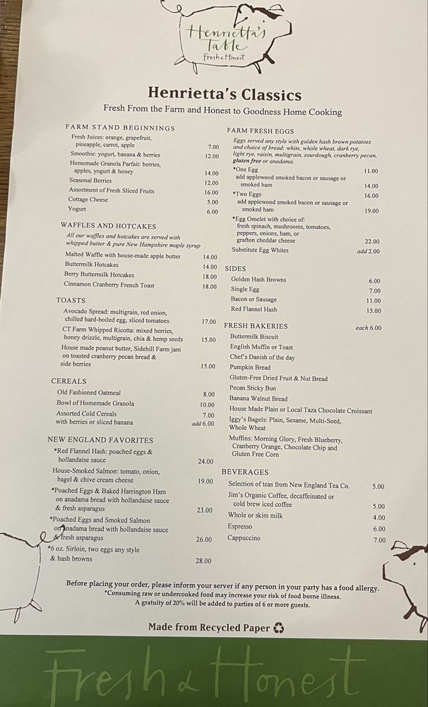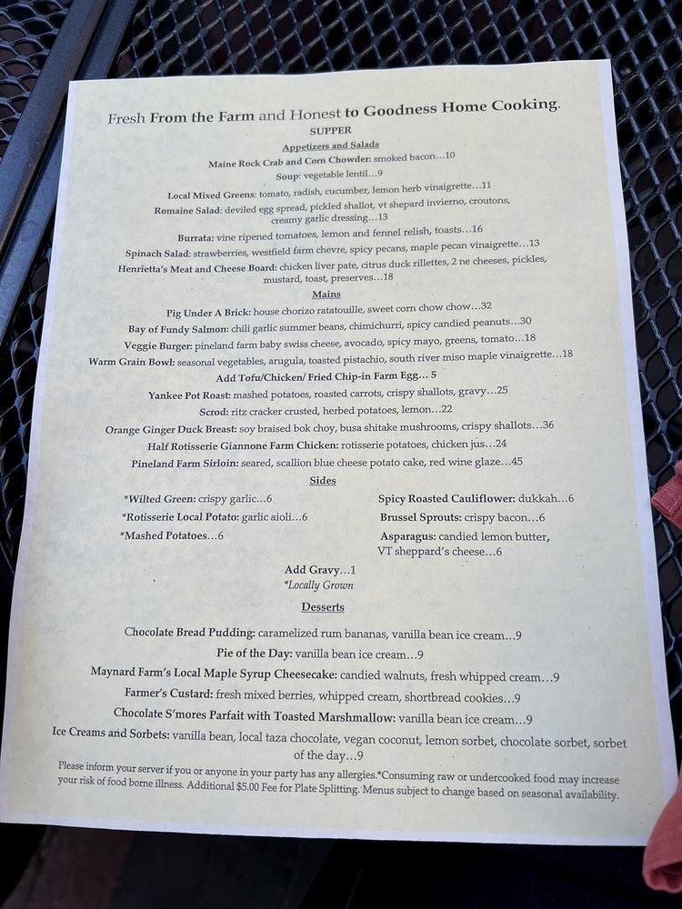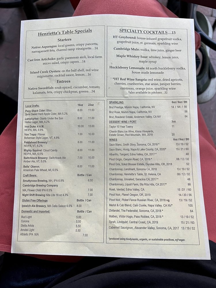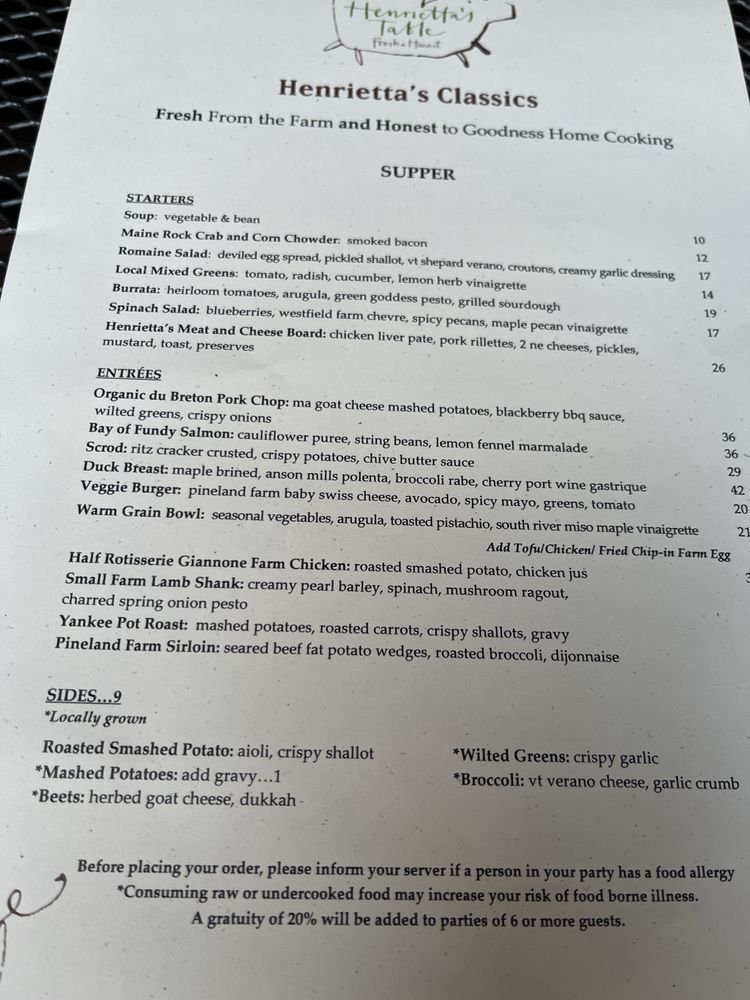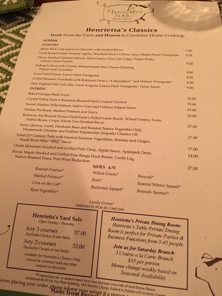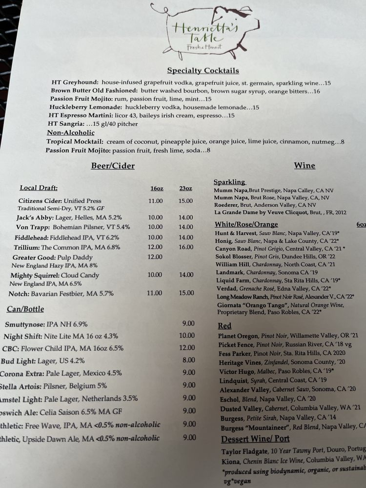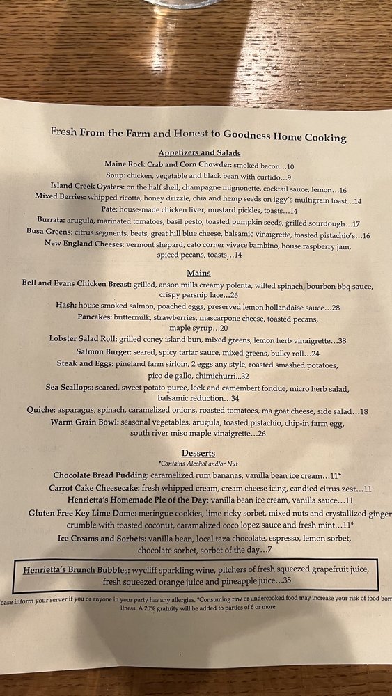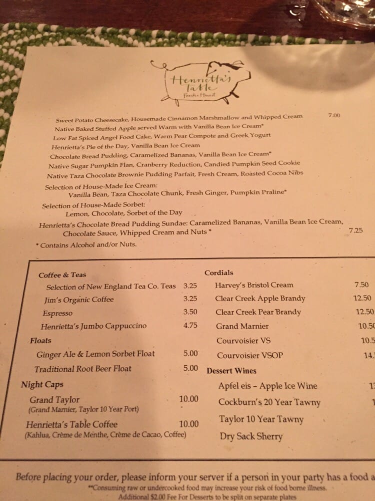 Henrietta's Table Menu (Update 2025)